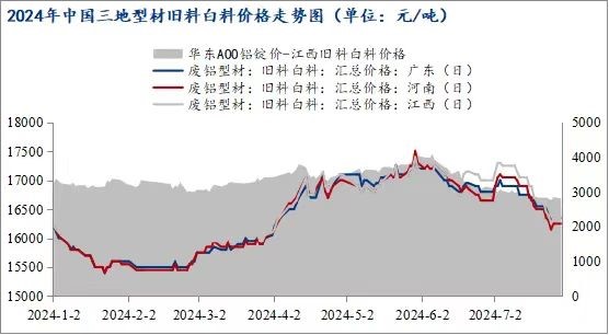 截止7月底,鋁價相對5月底高位時期下跌2800/噸左右,下跌12.9%。而7月底再生鋁棒主要廢鋁原料之一的型材舊料白料價格在16250-16350/噸,相比21700/噸的鋁價高位時期,舊白料價格下跌1150-1200/噸,下滑6.60%左右,廢鋁價格下跌幅度遠不及鋁價。在鋁價持續(xù)回落的單邊行情下,廢鋁貨場來不及出貨,持續(xù)處于虧損狀態(tài)。受成本端支撐,貨場挺價惜售意愿較強,市場上廢鋁流通量大幅減少,再生鋁棒企業(yè)采購困難,成本拉升。