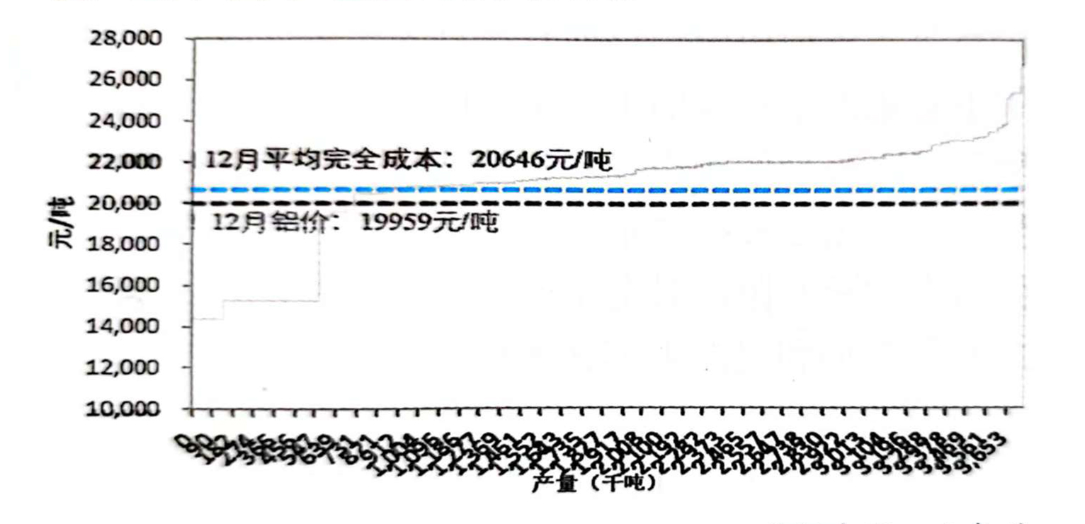 圖2-5 2024年12月中國(guó)電解鋁行業(yè)產(chǎn)能成本曲線(xiàn)