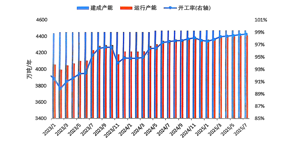 經(jīng)調(diào)整,6月份產(chǎn)量為364.5萬(wàn)噸;預(yù)計(jì)7月份產(chǎn)量為376.9萬(wàn)噸,同比增長(zhǎng)1.5%,日均產(chǎn)量12.16萬(wàn)噸,環(huán)比小幅增長(zhǎng)0.07%。
