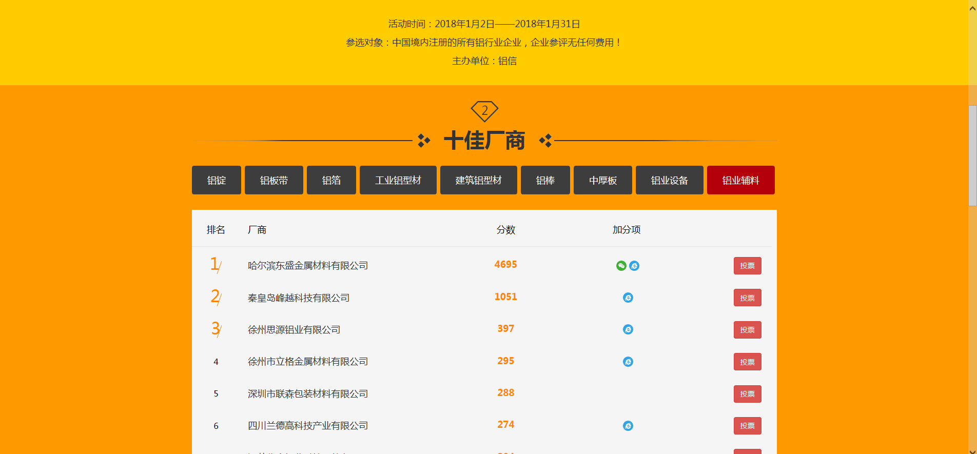 公司參加由鋁信主辦的中國(guó)鋁行業(yè)“十佳廠商”評(píng)選活動(dòng)